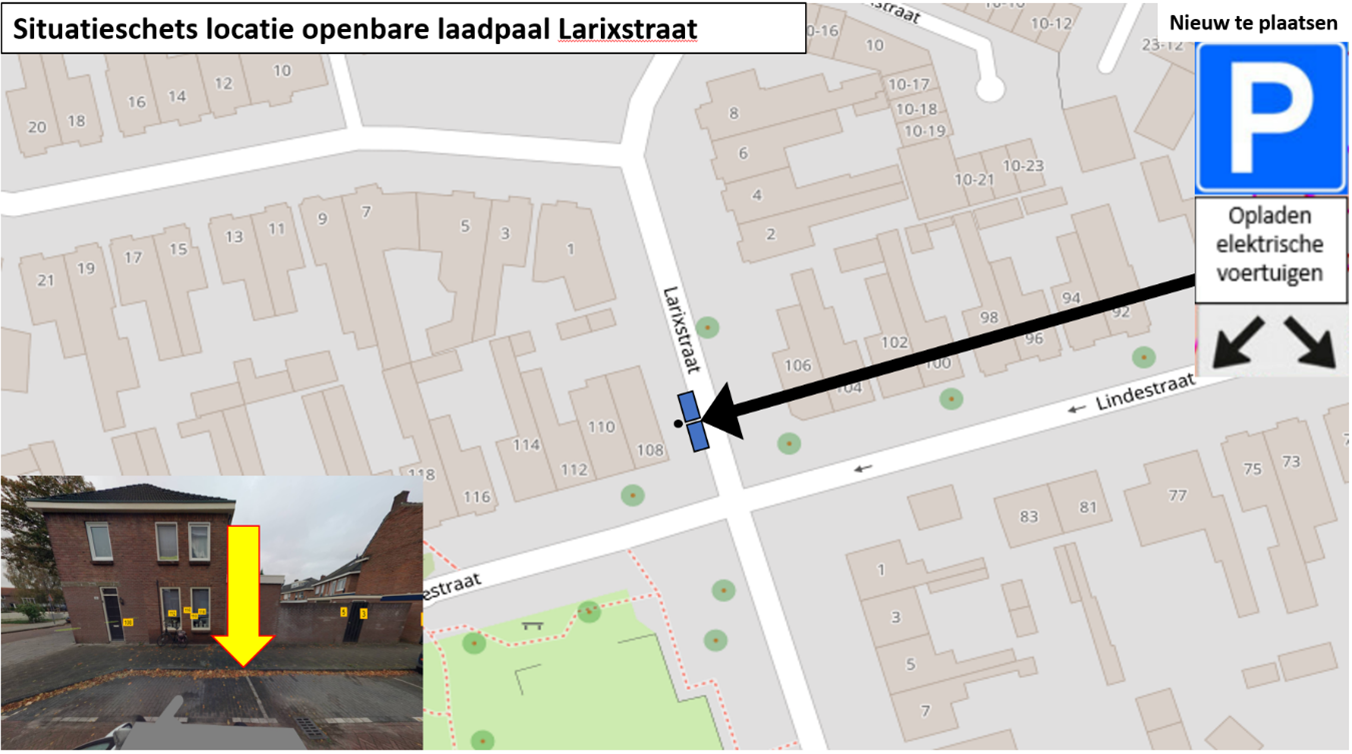 dat op basis van de hiervoor genoemde beleidsregel en de plankaart laadinfrastructuur een geschikte locatie is gevonden voor een laadvoorziening op de Larixstraat;