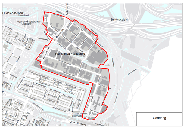 Het Bedrijventerrein Hoogvliet Gadering omvat de straten: Leerlooierstraat alle huisnummers, Steenhouwerstraat alle huisnummers, Bierbrouwerstraat alle huisnummers, Suikerbakkerstraat alle huisnummers, Tinnegieterstraat alle huisnummers, Schrijnwerkerstraat alle huisnummers, Hoefsmidstraat alle huisnummers, Pottebakkerstraat alle huisnummers, Oppermanstraat alle huisnummers, Oudelandseweg 5 t/m 41 (oneven), Nieuwe Langeweg alle huisnummers, Zadelmakerstraat alle huisnummers, Kompenmakerstraat alle huisnummers, Mandenmakerstraat 23 t/m 81 (oneven) en 26 t/m 190 (even), Beurtschipperstraat alle huisnummers, Kaasmakerstraat alle huisnummers, Koddeweg 1 t/m 61 (oneven) en 6 t/m 100 (even), Hoogvlietse Kerkweg alle huisnummers.