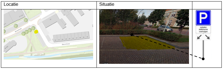 de laadpaal gelijktijdig twee elektrische auto’s kan opladen en er daarom bij iedere laadpaal twee parkeerplaatsen gereserveerd dienen te worden als parkeerplaats uitsluitend bedoeld voor het opladen van elektrische auto’s. In beginsel wordt er één parkeerplek ingericht en bij veel gebruik wordt de tweede parkeerplek ook ingericht voor het opladen van elektrische auto’s;