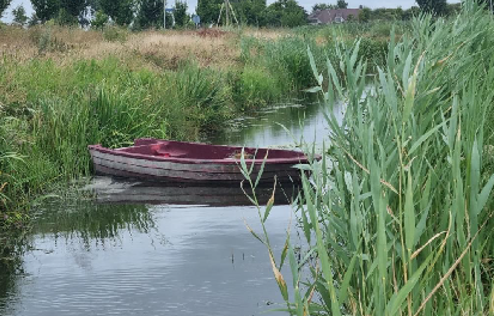 • Een boot in het Mallegat op de passeerstrook te Katwijk aan de Rijn