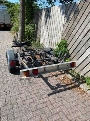 • Een boottrailer in Katwijkerbroek te Valkenburg