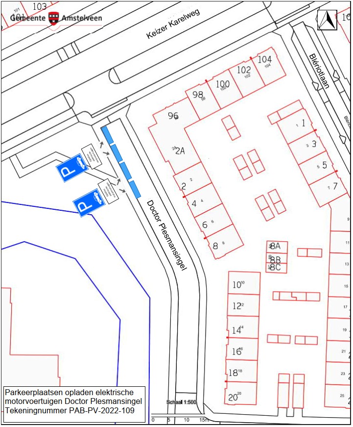Burgemeester en wethouders van Amstelveen besluiten om aan de Doctor Plesmansingel vier parkeerplaatsen aan te wijzen als parkeerplaats voor het opladen van elektrische motorvoertuigen. De parkeerplaatsen mogen alleen gebruikt worden voor het opladen van deze elektrische motorvoertuigen.