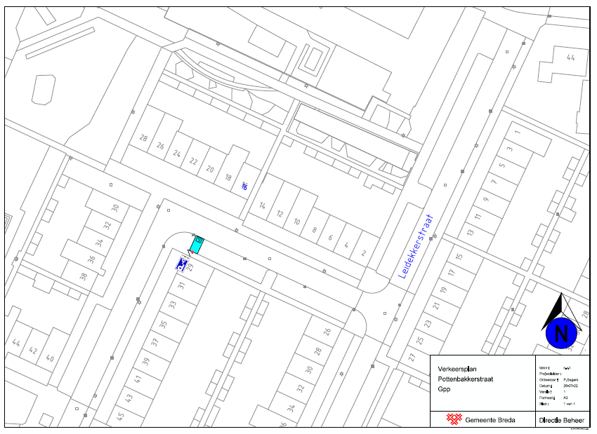 Een gehandicaptenparkeerplaats op kenteken aan te wijzen in de Pottenbakkerstraat tegenover huisnummers 16-18 te Breda . Een en ander zoals weergegeven op de bijgevoegde tekening ‘GPP Pottenbakkerstraat Breda’.