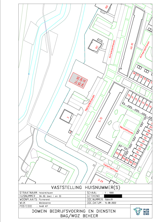 Kennisgeving huisnummerbesluit Helsinkihaven 3A t/m 3Q, m.u.v. I en O Purmerend