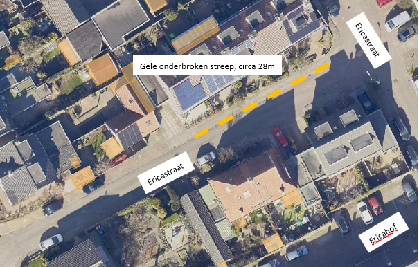 doormiddel van het plaatsen van gele onderbroken streep als bedoeld in artikel 24, eerste lid, sub e, van het RVV-1990, op het betreffende weggedeelte van de Ericastraat, ter hoogte van huisnummer 1 t/m 9, een parkeerverbod in te voeren.