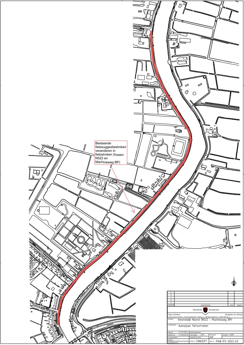 Burgemeester en wethouders van Amstelveen besluiten om aan weerszijden van de rijbaan van de Amsteldijk Zuid, Amsteldijk Noord, Nesserlaan, Hollandsedijk, Noorddammerweg en Meerlandenweg fietsstroken met onderbroken strepen aan te duiden als bedoeld in artikel 12, aanhef en onder b.II. van het Besluit administratieve bepalingen inzake het wegverkeer. De weggedeelten waar fietsstroken zullen worden aangeduid zijn weergegeven op tekeningen