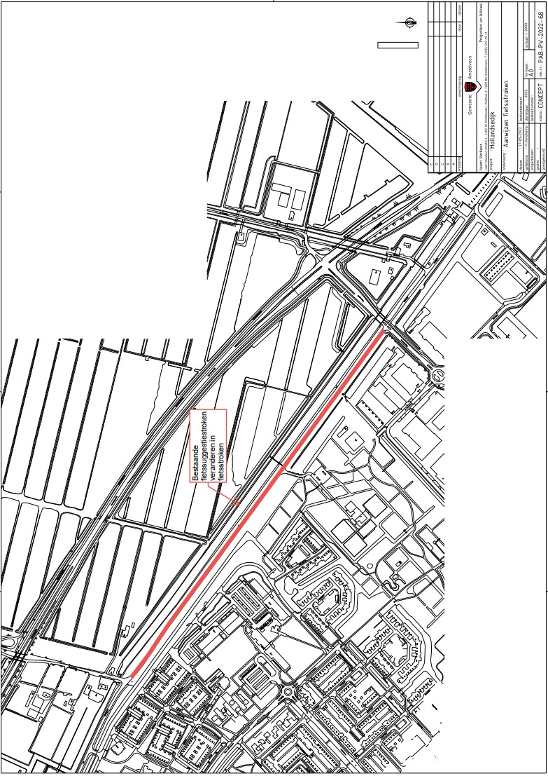 PAB-PV-2022-61, PAB-PV-2022-63, PAB-PV-2022-64, PAB-PV-2022-65 en PAB-PV-2022-68. De fietsstroken worden aangeduid met fietssymbolen om de 250 meter en direct na zijwegen. In verband met de aanleg van de fietsstroken worden de borden E1 en E2 van bijlage 1 van het Reglement verkeersregels en verkeerstekens 1990 langs de fietsstroken verwijderd.