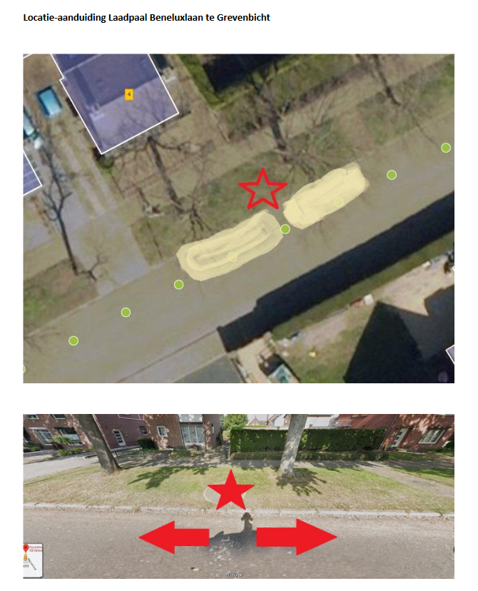 Voor het inrichten van 2 parkeervakken voor het laden van elektrische auto’s direct naast de inrit van Beneluxlaan huisnummer 4.