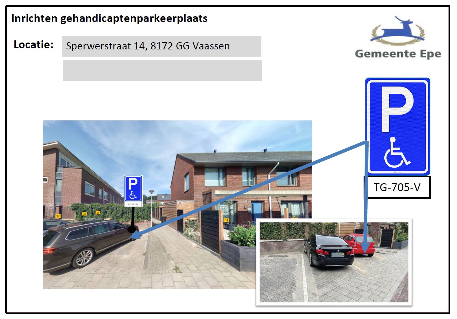Verkeersbesluit aanleg gehandicaptenparkeerplaats op kenteken Sperwerstraat 14, 8172 GG Vaassen