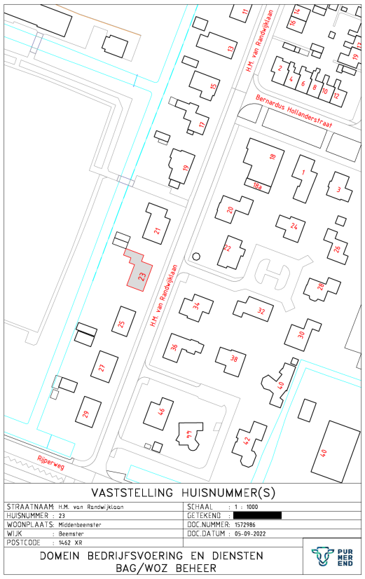 Kennisgeving huisnummerbesluit H.M van Randwijklaan 23 Middenbeemster