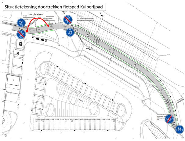 de aanleg van een fietspad op het dijklichaam echter geen garantie biedt dat fietsers de gebruikelijke route over het parkeerterrein niet meer zullen gaan gebruiken; ( het betreft in hoofdzaak plaatselijk bekend verkeer, de route via de parkeerplaats naar de uitgang is korter en deze route kan niet verboden worden door het nemen van een verkeersmaatregel);