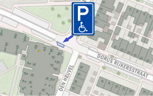 Bij de gemeente is er een aanvraag ingediend tot het instellen van een gehandicaptenparkeerplaats aan de Dorus Rijkersstraat bij Den Heuvel (gebouw de Meente) te Genemuiden