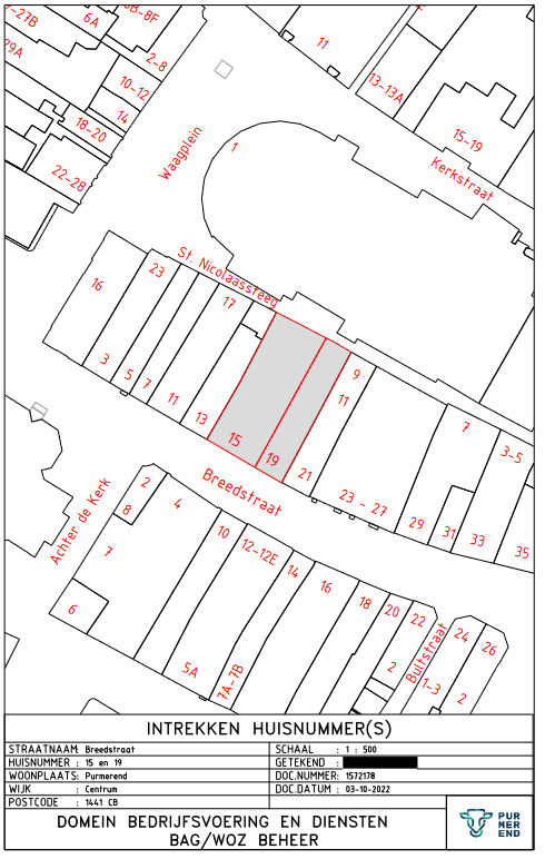 Huisnummerbesluit Breedstraat 15 en 19 en St. Nicolaassteeg 11A t/m 11F, Purmerend