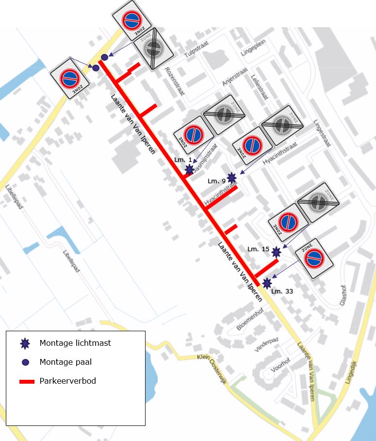 Parkeerzoneverbod Laantje van Van Iperen ter hoogte van Voorhof, parkeerzoneverbod wordt verplaatst richting Asterstraat.