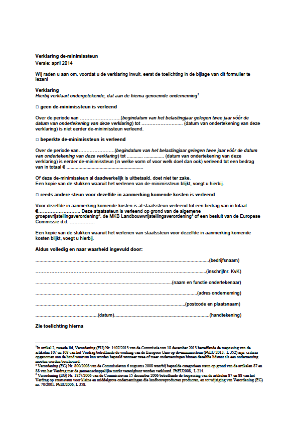 De hier aangeboden pdf-bestanden van het Staatsblad, Staatscourant, Tractatenblad, provinciaal blad, gemeenteblad, waterschapsblad en blad gemeenschappelijke regeling vormen de formele bekendmakingen in de zin van de Bekendmakingswet en de Rijkswet goedkeuring en bekendmaking verdragen voor zover ze na 1 juli 2009 zijn uitgegeven. Voor pdf-publicaties van vóór deze datum geldt dat alleen de in papieren vorm uitgegeven bladen formele status hebben; de hier aangeboden elektronische versies daarvan worden bij wijze van service aangeboden.