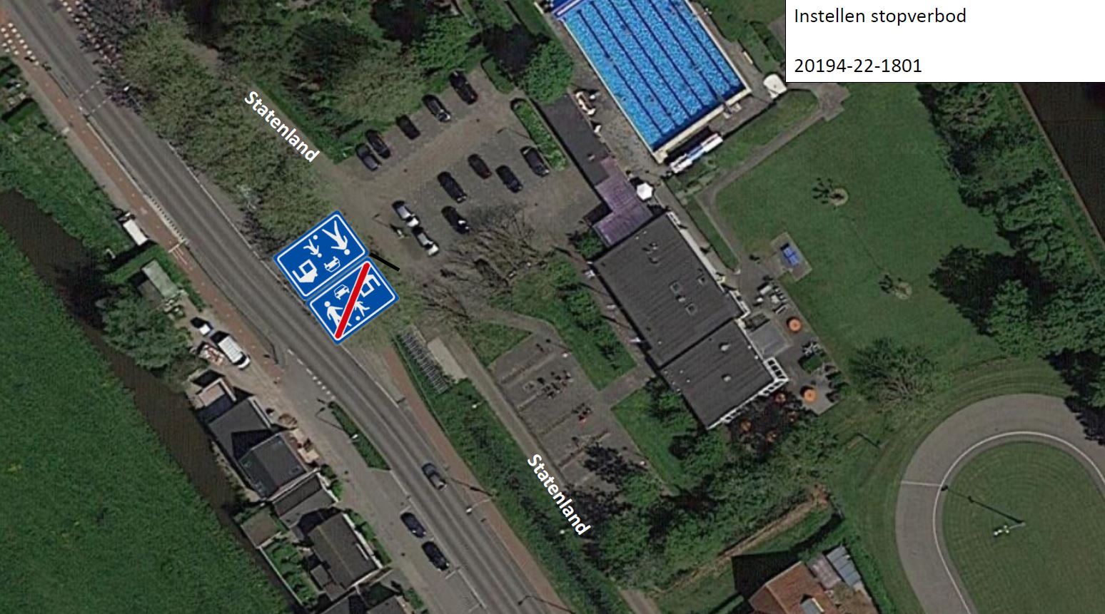het plaatsen van verkeersbord G05 (begin erf) en verkeersbord G06 (einde erf) als bedoeld in bijlage I van het RVV 1990, ter hoogte van het parkeerterrein van het Statenbad aan nummer 1;