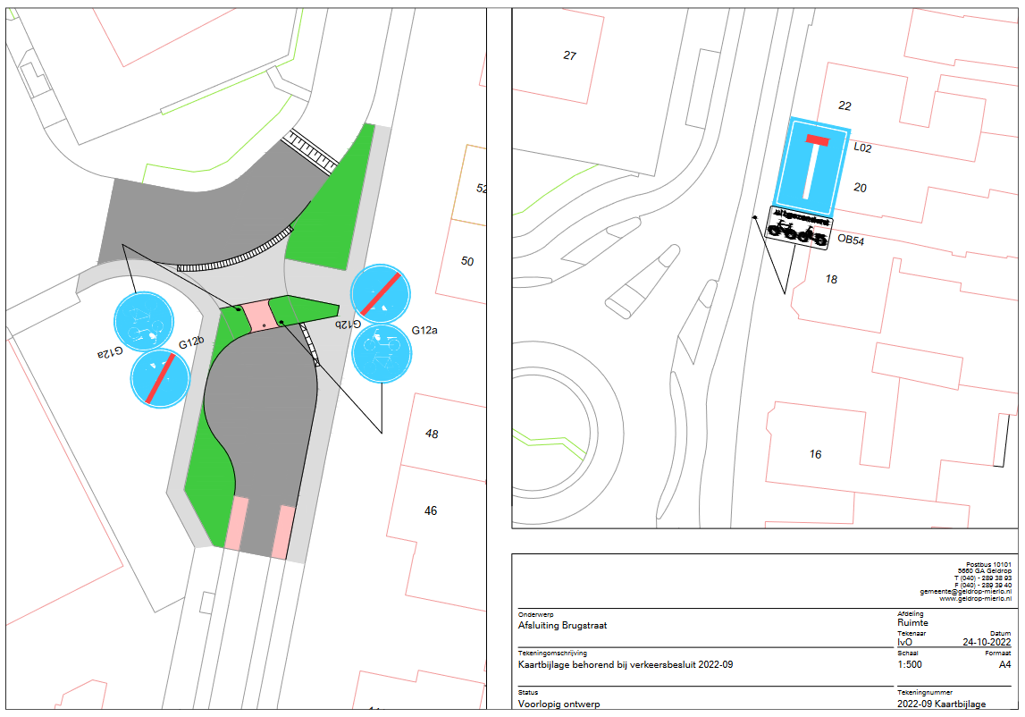 Verkeersbesluit voor het afsluiten van de straat voor doorgaand verkeer aan Brugstraat te Mierlo