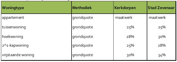 3.1.3. Grondquote voor sociale koopwoningen en vrije sector woningen (huur en koop)