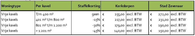 Voor particulier opdrachtgeverschap wordt gerekend met een vaste prijs per m². Hierbij wordt een kortingsstaffel toegepast naarmate de grootte van de kavel toeneemt.
