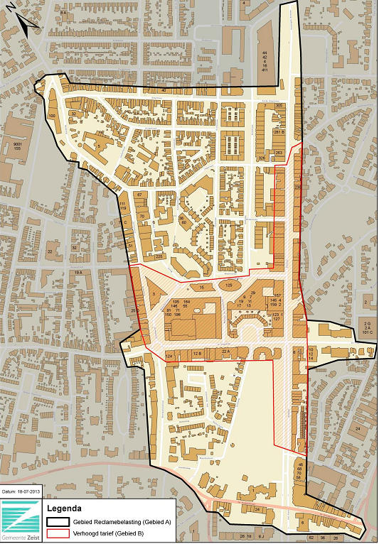 Kaart behorende bij de Verordening op de heffing en de invordering van reclamebelasting 2023