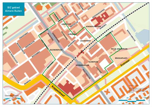 Kaart BIZ Almere Buiten Centrum: