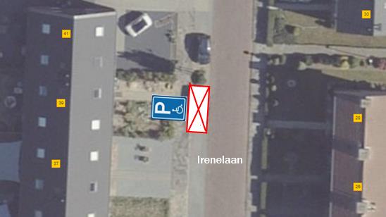Verkeersbesluit aanwijzen individuele gehandicaptenparkeerplaats Irenelaan in Dodewaard.