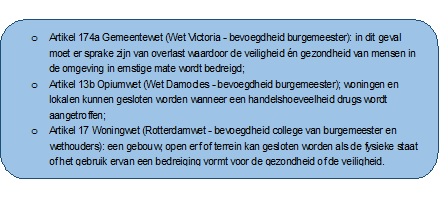 Het gaat hier echter om zware instrumenten die, zeker waar het om woningen gaat, het (woon)recht van burgers inperken en alleen in specifieke situaties uitkomst bieden. Tevens zijn er strenge juridische eisen verbonden aan het inzetten van deze bevoegdheden, waaronder een gedegen dossier, waarin de woonoverlast wordt aangetoond.