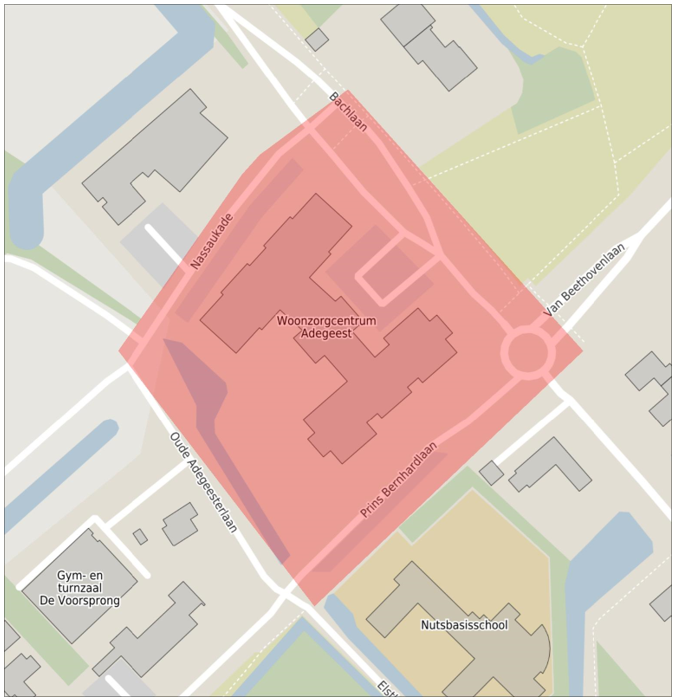 Kaart vuurwerkvrije zone Woonzorgcentrum Adegeest