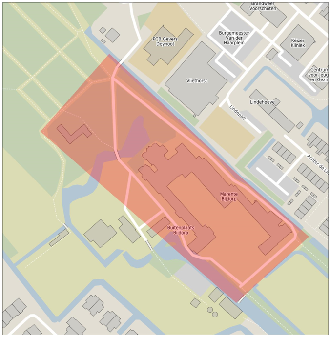 Kaart vuurwerkvrije zone Kinderboerderij Voorschoten