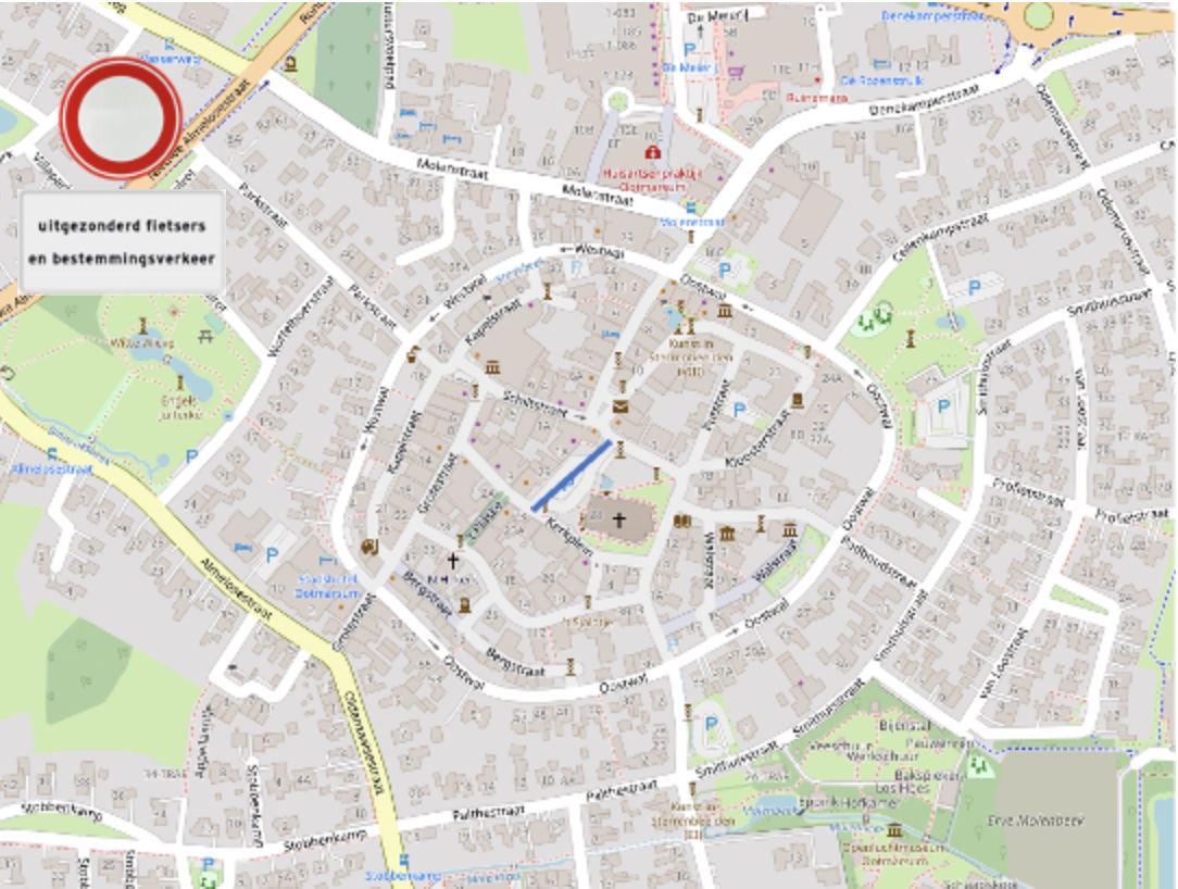 Om de diverse verkeersmaatregelen te effectueren, zijn meerdere besluiten noodzakelijk. Voorliggend verkeersbesluit beschrijft het wijzigen van de bestaande geslotenverklaring op het Kerkplein (ten westen van de kerk).