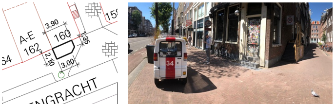 Rozengracht 26: op de hoek met de Eerste Bloemdwarsstraat is een klein terras toegestaan.