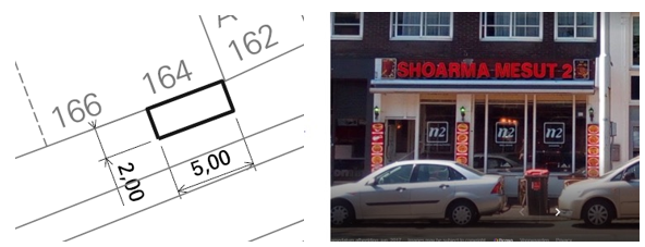 Restaurant Mesut 2 is gevestigd op de Rozengracht 164. Aangezien er verder geen obstakels op het trottoir staan, is de doorloopruimte groot.