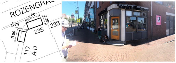 Rozengracht 28: op de hoek met de Eerste Bloemdwarsstraat is een klein terras toegestaan onder voorbehoud. Er is hier weinig ruimte. Als de nieuwe inrichting het toestaat, is hier ruimte voor 1 tafeltje. Het is wel ingetekend in het plan