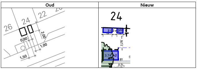 Op basis van bovenstaande uitgangspunten zijn de terrassen ingetekend. Op een aantal locaties bleek het lastig om het vergunde oppervlak terug te brengen in de nieuwe situatie. Dit is met name op de hoeken waar weinig tot geen terras in de servicestroken mogelijk is. En waar ook om de hoek in de dwarsstraten zeer beperkt tot geen ruimte is voor een terras. Terrassen gaan er hier erg op achteruit als strikt aan alle uitgangspunten wordt vastgehouden. Hier is de 80cm uit de gevel losgelaten om meer in de buurt te komen van het huidige aantal m2 vergund terras. Voldoende doorloopruimte van minimaal 2,90 meter is dan het belangrijkste, de duidelijke lijn in de straat is minder belangrijk voor terrassen op lastige plekken. Bij de nummers 26 en 28 is een uitzondering gemaakt. Hier is de doorloopruimte 2,70 en 2,75 meter om toch nog iets meer tegemoet te kunnen komen aan het huidige vergunde oppervlak.