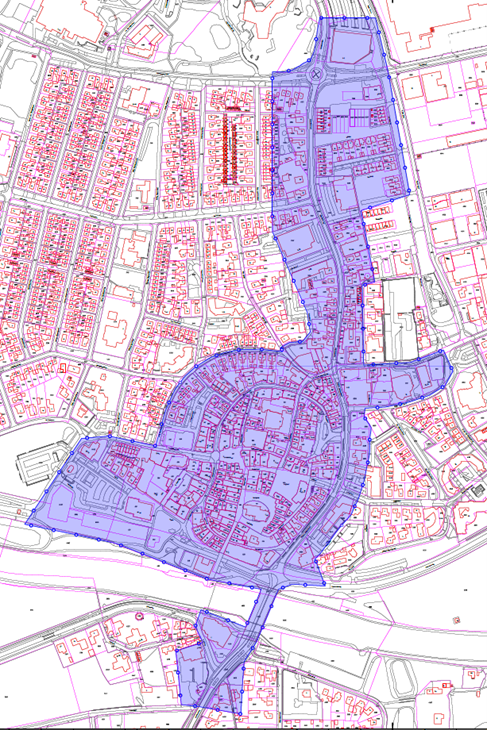 Het blauw geareerde deelgebied van Ommen betreft het centrumgebied als bedoeld in artikel 2 van de ‘verordening reclamebelasting 2023’