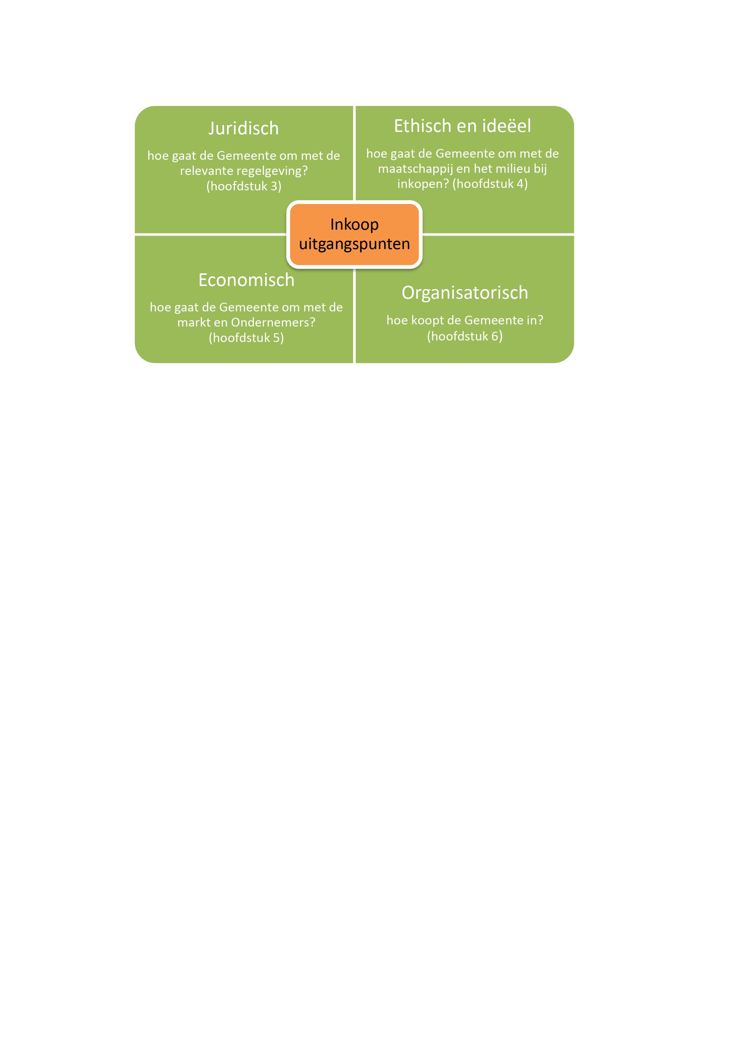 Om deze doelstellingen te realiseren zijn juridische, ethische en ideële, economische en organisatorische uitgangspunten vastgelegd in dit Inkoop- en Aanbestedingsbeleid. Deze uitgangspunten zijn in de volgende hoofdstukken uitgewerkt.
