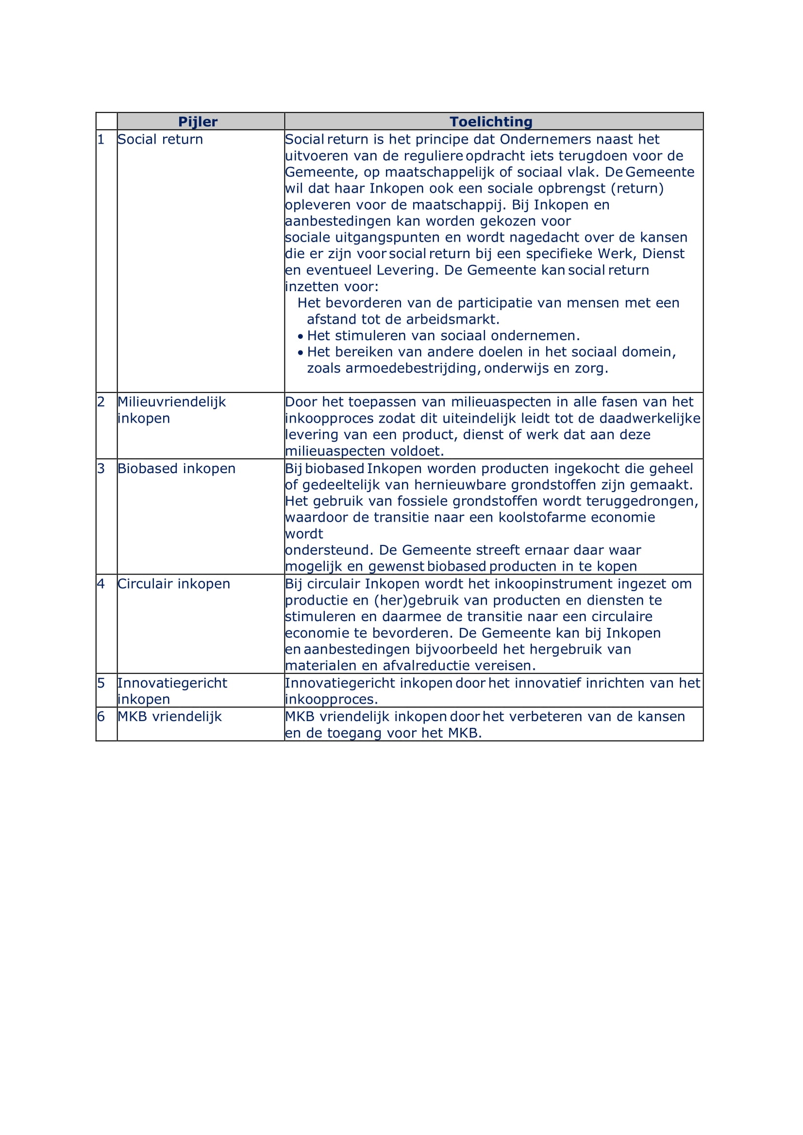 Daarnaast gaat de Gemeente bij het Inkopen van Werken, Leveringen of Diensten uit van de volgende uitgangspunten: