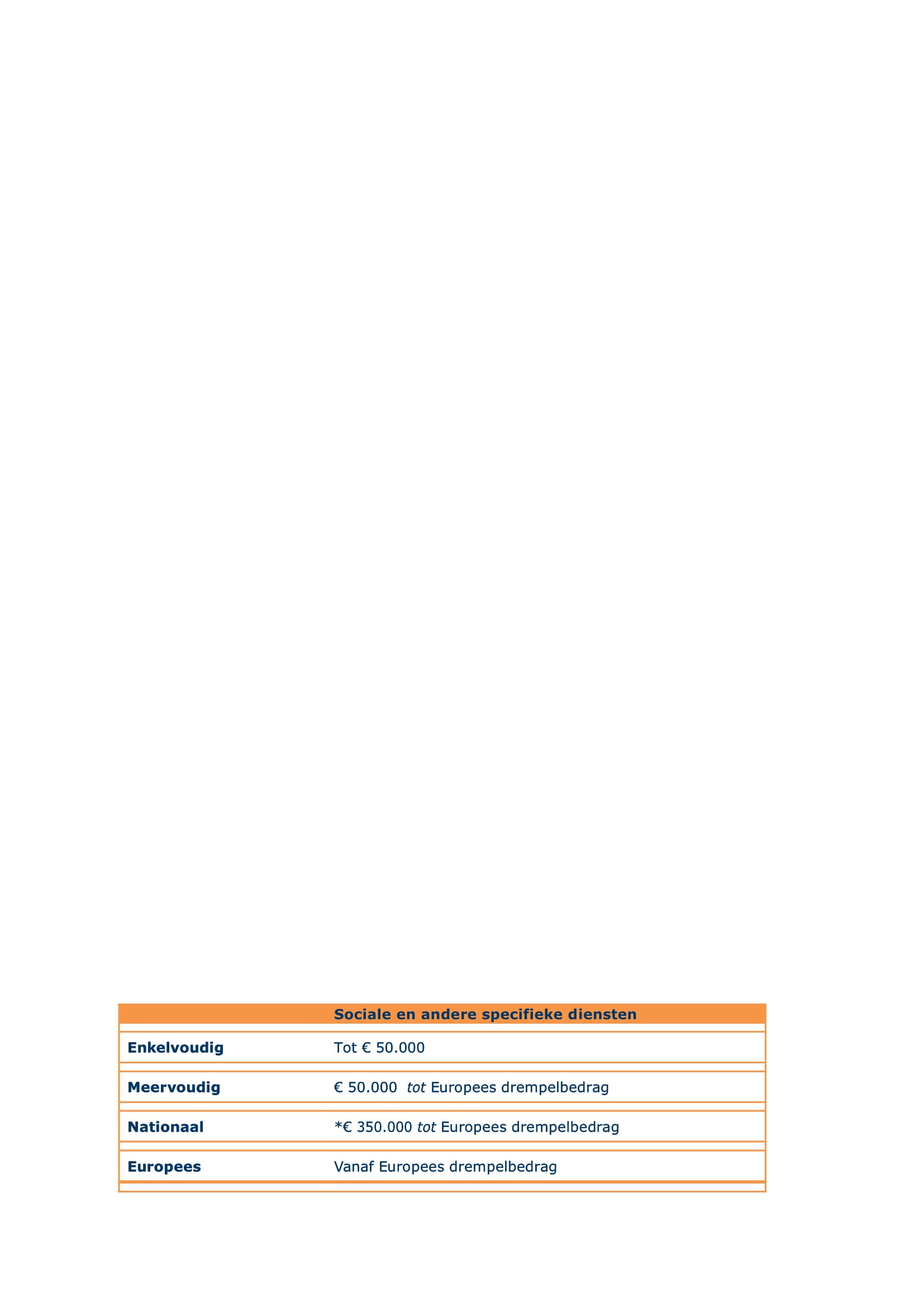 Onder de (Europese) drempelbedragen zal de Gemeente nationaal aanbesteden.