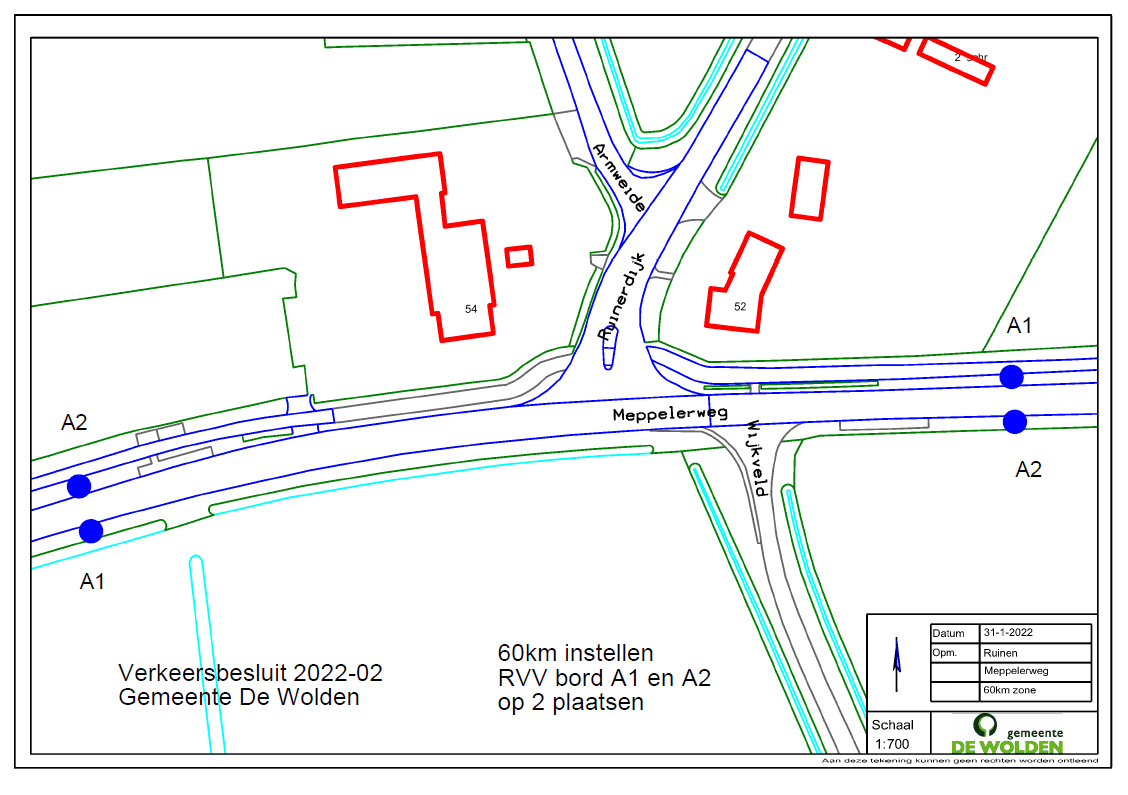 I. op het weggedeelte Meppelerweg kruising Ruinerdijk - Wijkveld een snelheidsbeperking in te stellen, zoals op de bij dit besluit behorende en als zodanig gewaarmerkte situatietekening is aangegeven;
