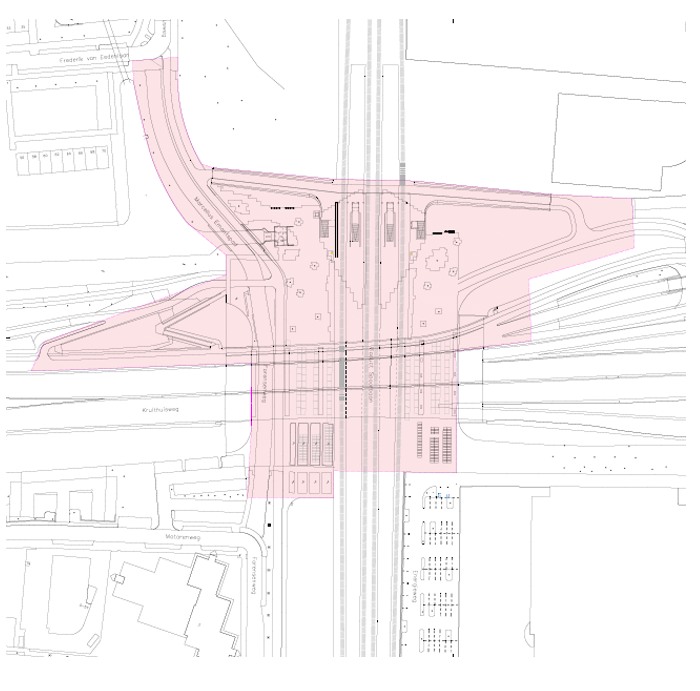 alle wegen, weggedeelten of plaatsen in en rond het Station Delft gelegen in het gebied begrensd door hieronder genoemde straten en zoals aangegeven op de bij dit besluit horende kaart: