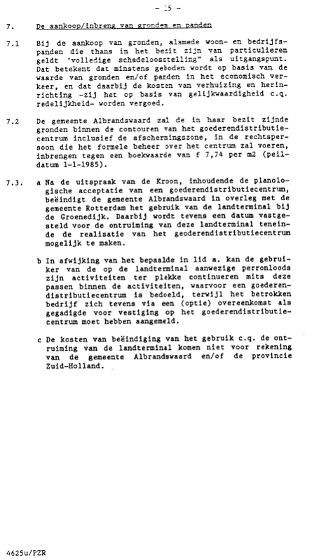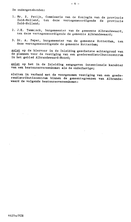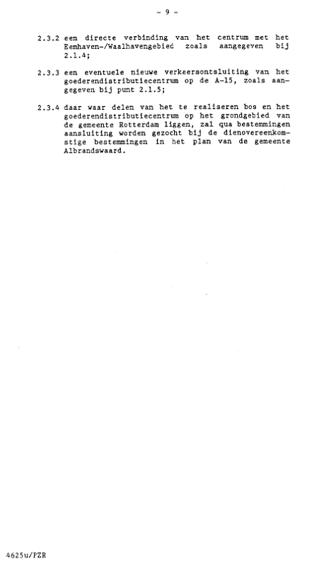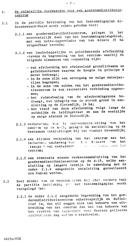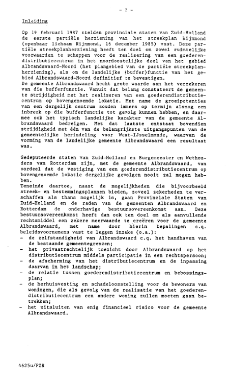 Op 19 februari 1987 stelde de provincie Zuid-Holland de eerste partiële herziening van het streekplan Rijnmond vast. Deze partiële herziening had onder andere ten doel om zowel ruimtelijke voorwaarden te scheppen voor realisatie van een goederendistributiecentrum in het noordoostelijke deel ven het gebied Albrandswaard-Noord als om de landelijke (buffer)functie van het gebied Albrandswaard-Noord definitief te bevestigen. De gemeente Albrandswaard constateerde een strijdigheid tussen de realisatie van een goederendistributiecentrum en de landelijke bufferfunctie; met name de groeipotenties van een dergelijk distributiecentrum. De gemeente Albrandswaard wenste dan ook zekerheden te verkrijgen dat het typische landelijke karakter van de gemeente Albrandswaard niet bedreigd zal worden nu en in de toekomst.