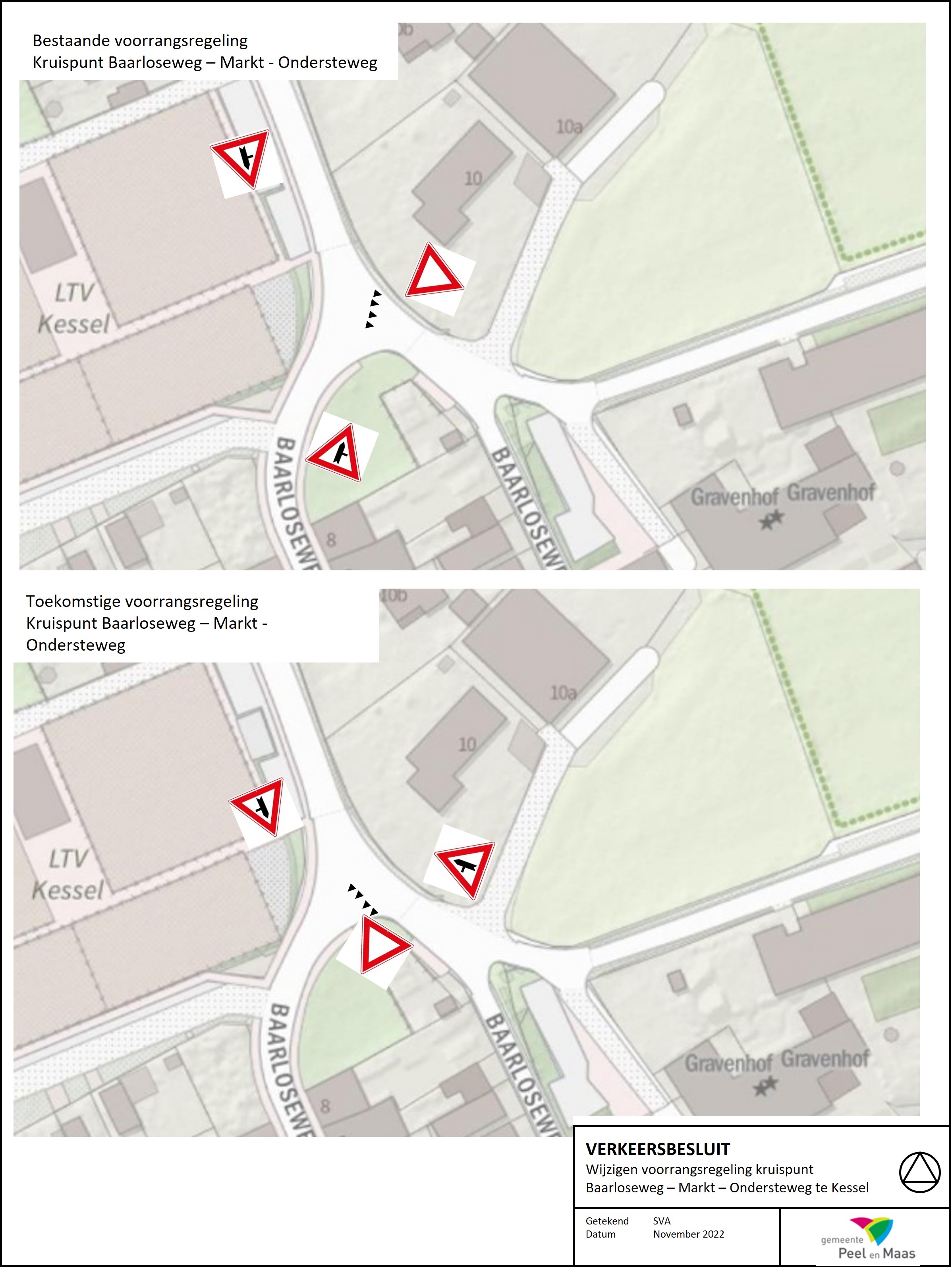 Gemeente Peel en Maas - Verkeersbesluit – Wijzigen voorrangsregeling kruispunt Baarloseweg-Markt - Ondersteweg- Kessel