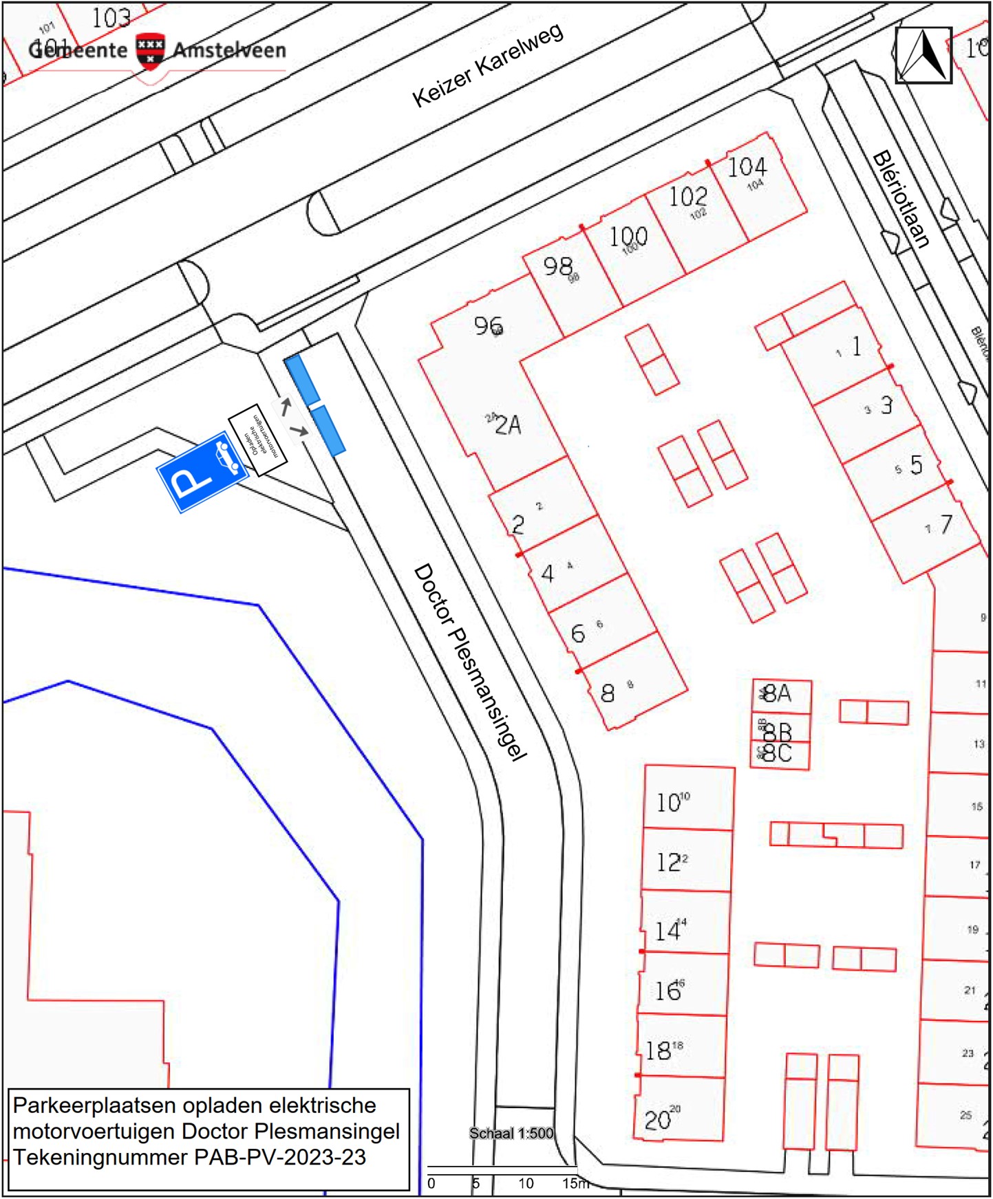 Burgemeester en wethouders van Amstelveen besluiten om hun besluit van 10 augustus 2022 (zaaknummer Z22-062701), waarbij vier parkeerplaatsen in de Doctor Plesmansingel zijn aangewezen als parkeerplaats voor het opladen van elektrische motorvoertuigen, in te trekken. De openbare laadpalen zijn nog niet geplaatst waardoor in de praktijk niets veranderd. De geplande parkeerplaatsen voor het opladen van deze elektrische motorvoertuigen zijn weergegeven op de in dit besluit opgenomen tekening PAB-PV-2022-109.