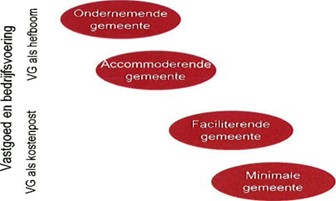 Gemeenten gaan verschillend om met de eigen vastgoedportefeuille. De gemeentelijke taakopvattingen (breed vs. smal) en het perspectief waarmee vastgoed als bedrijfsmiddel wordt ingezet, bepalen deze rolopvatting, zie ook figuur 1.