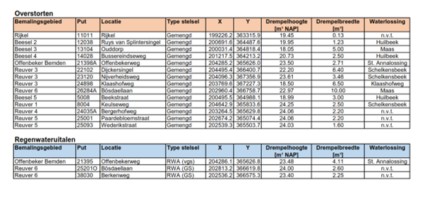 Meten overstorten: de gemeente beschikt over een mobiele meeteenheid waarmee de overstorten worden bemeten. Hierbij is met name gekeken naar de kwaliteit van het overstortende water, maar ook de kwantiteit is in beeld gebracht. In de planperiode is gemeten bij twee overstorten (Beekstraat in Beesel en Klaashofweg in Reuver). De meetgegevens gebruiken we om doelmatige maatregelen voor de overstort te bepalen