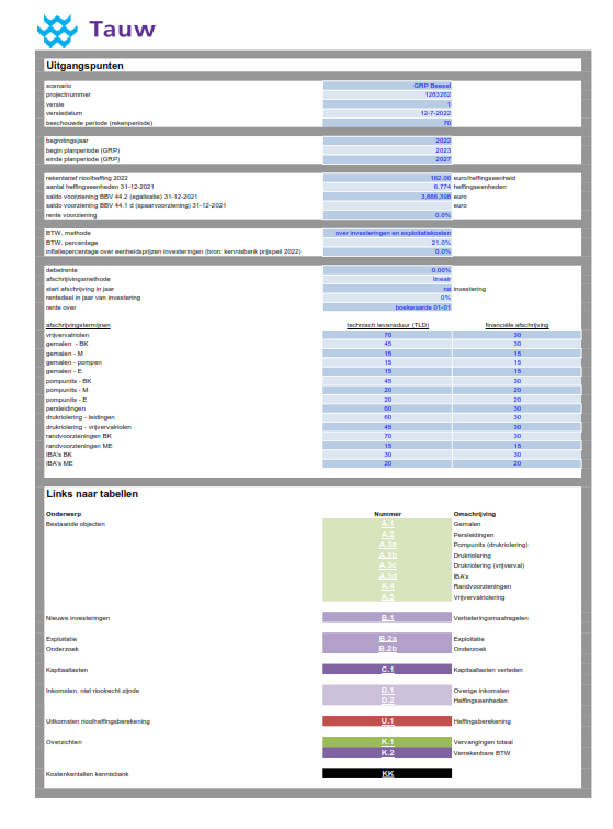 Onderdeel van het GRP is een kostendekkingsberekening. Het doel van deze berekening is een onderbouwde prognose te maken voor het verloop van de rioolheffing in de toekomst. Hoewel een zo goed mogelijke benadering is nagestreefd van het toekomstige verloop van de uitgaven en inkomsten, blijft dit vooral het bepalen van de trend naar de toekomst.
