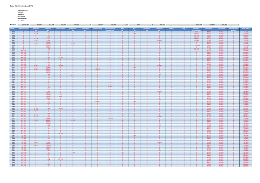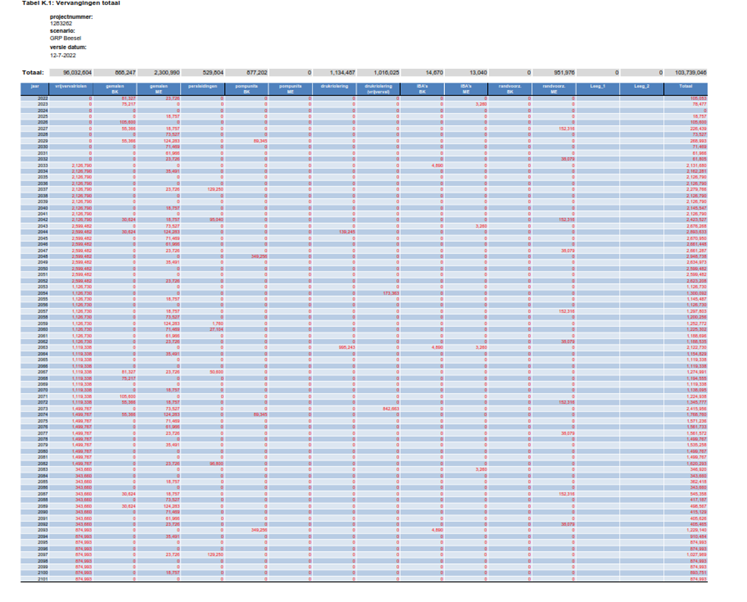 De totale lasten in de planperiode bedragen totaal circa EUR 7,2 miljoen. In figuur 0.1 zijn de lasten op langere termijn weergegeven. De totale lasten over de beschouwde periode van 70 jaar (2022 – 2091) bedragen circa EUR 172 miljoen.
