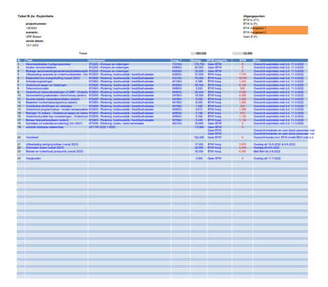 Naar aanleiding van dit overleg is besloten de BTW mee te nemen conform opgenomen in het GRP 2018 – 2022 (over exploitatie, onderzoeken en investeringen) en de te veel aan doorbelaste BTW aan de bewoners terug te geven in de vorm van een korting op de rioolheffing. In 2022 is deze korting à EUR 36,00 voor het laatst in mindering gebracht op de rioolheffing. In 2023 is de rioolheffing weer terug op het oorspronkelijke tarief van EUR 162,00.