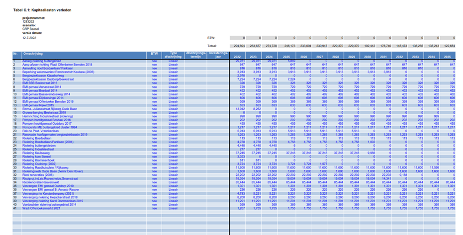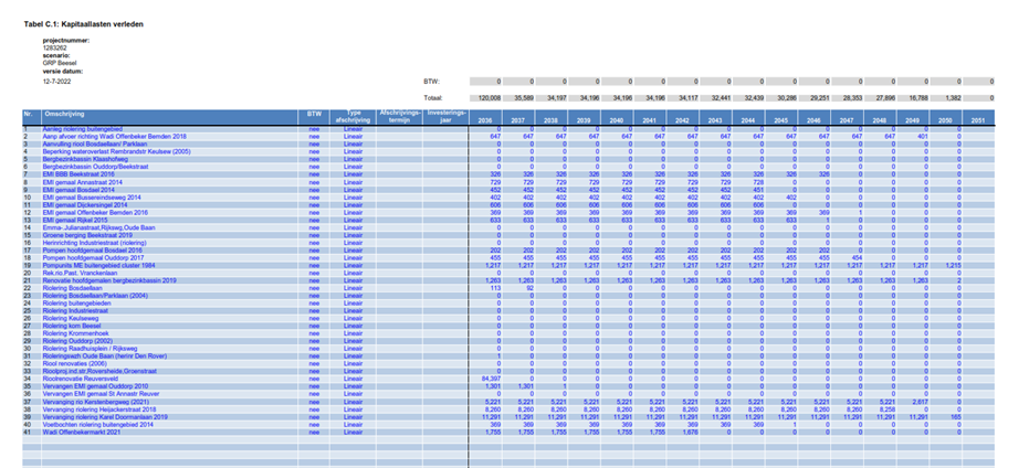 Conform de uitgangspunten van het Besluit Begroting en Verantwoording provincies en gemeenten (BBV), activeren en kapitaliseren we de (vervangings)investeringen en nemen we op als nieuwe kapitaallast. Samen met de exploitatielasten (incl. onderzoeken), de kapitaallasten van investeringen uit het verleden en de BTW compensatie, vormen deze nieuwe kapitaallasten de totale lasten, noodzakelijk voor een goede invulling van de gemeentelijke zorgplicht.