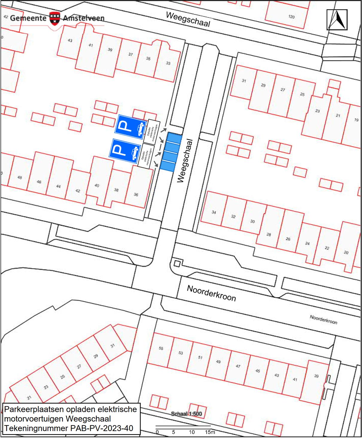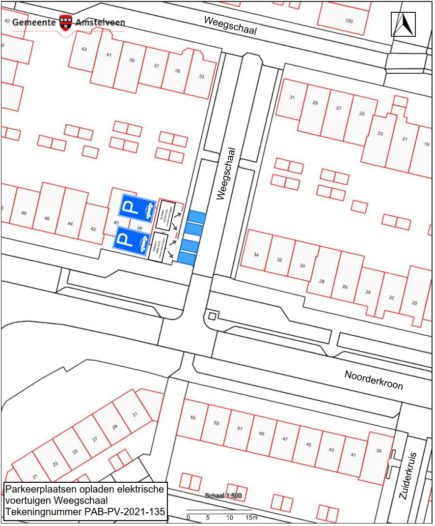 Burgemeester en wethouders van Amstelveen besluiten om hun besluit van 2 mei 2022 (zaaknummer Z22-031216), waarbij vier parkeerplaatsen in de straat Weegschaal zijn aangewezen als parkeerplaats voor het opladen van elektrische motorvoertuigen, in te trekken. De laadpalen bij deze parkeerplaatsen zijn in oktober 2022 geplaatst en zullen worden verplaatst. De locatie van de gereserveerde parkeerplaatsen uit het verkeersbesluit van 2 mei 2022 zijn weergegeven op de in dit besluit opgenomen tekening PAB-PV-2021-135.